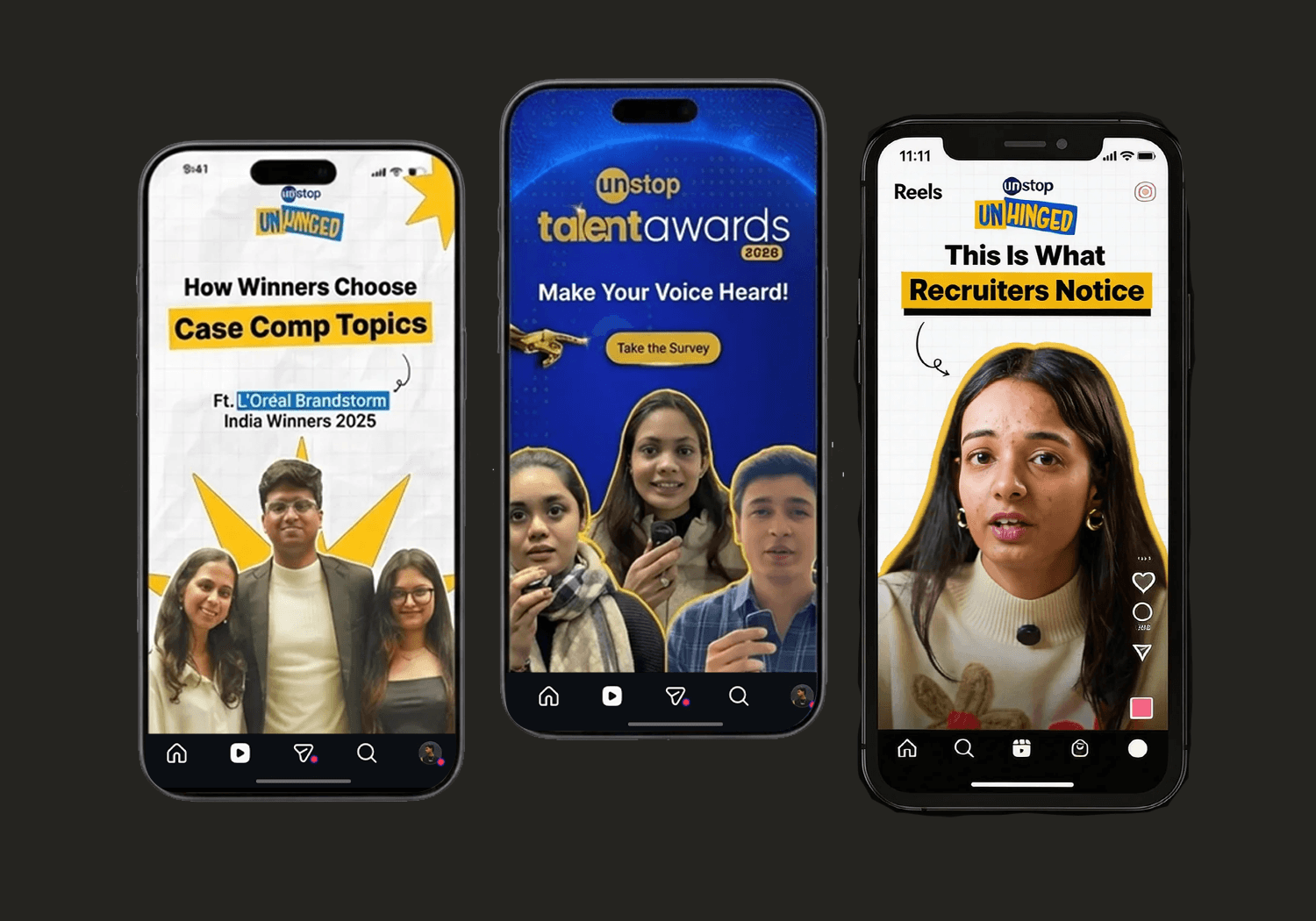 In 90 days, Unstop evolved from a posting account into a recognizable digital personality students trusted and returned to — with stronger community foundations, clearer visual direction, and scalable content pillars in place.